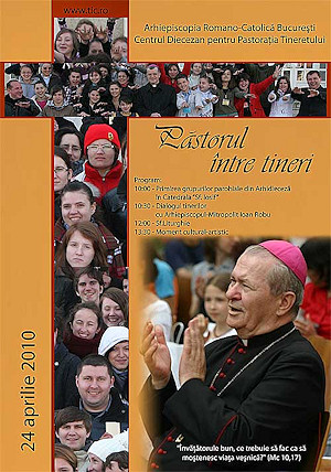 21.04.2010, (Catholica) - Sâmbătă, 24 aprilie 2010, în ajunul Duminicii Bunului Păstor, în Catedrala „Sf. Iosif” din Bucureşti Arhiepiscopul Ioan Robu se va întâlni cu tinerii din întreaga Arhidieceză Romano-Catolică de Bucureşti. Întâlnirea va avea ca temă: „Învăţătorule bun, ce trebuie să fac ca să moştenesc viaţa veşnică?” (Mc 10,17).