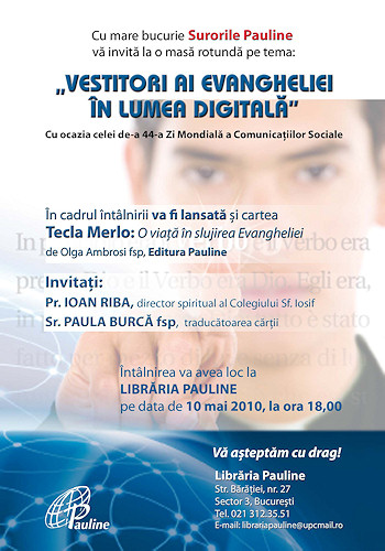 luni 10 mai, la ora 18.00, la Libraria Pauline.