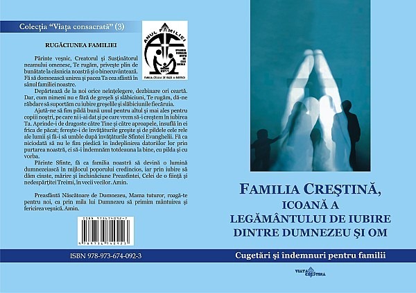 Cităm din Rugăciunea Familiei de pe coperta IV: „Părinte veşnic, Creatorul şi Susţinătorul neamului omenesc, Te rugăm, priveşte plin de bunătate la căsnicia noastră şi o binecuvântează. Fă să domnească unirea şi pacea Ta cea sfântă în sânul familiei noastre. Depărtează de la noi orice neînţelegere, dezbinare ori ceartă. Dar cum nimeni nu e fără de greşeli şi slăbiciuni, Te rugăm, dă-ne răbdare să suportăm cu iubire greşelile şi slăbiciunile fiecăruia. Ajută-ne să fim pildă bună unul pentru altul şi mai ales pentru copiii noştri, pe care ni i-ai dat şi pe care vrem să-i creştem în iubirea Ta”.