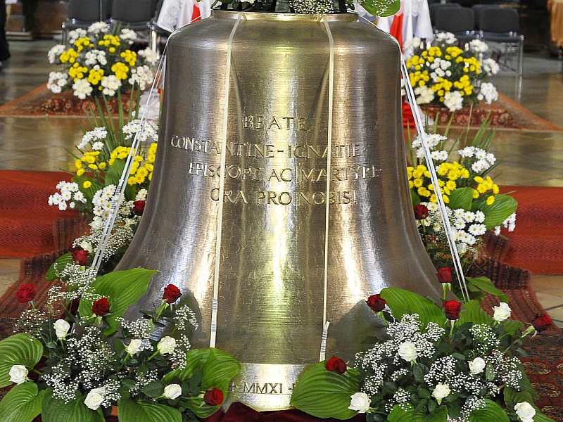 05.03.2012, Timişoara (Catholica) - Episcopia Romano-Catolică de Timişoara a solicitat, primăvara trecută, turnarea unui nou clopot pentru Domul din oraşul de pe Bega, realizat în cinstea Fericitului Constantin Ignaţiu Bogdanffy, Episcop martir de Oradea. Temeiul iniţiativei a fost acela că Episcopul Bogdanffy şi-a petrecut o parte din copilărie şi din tinereţe pe teritoriul Diecezei de Timişoara, pe când era elev al renumitului Liceu Piarist, iar la vârsta de 10 ani, la 15 mai 1921 a primit Sacramentul Sfântului Mir în Domul (Catedrala) Sfântul Gheorghe.