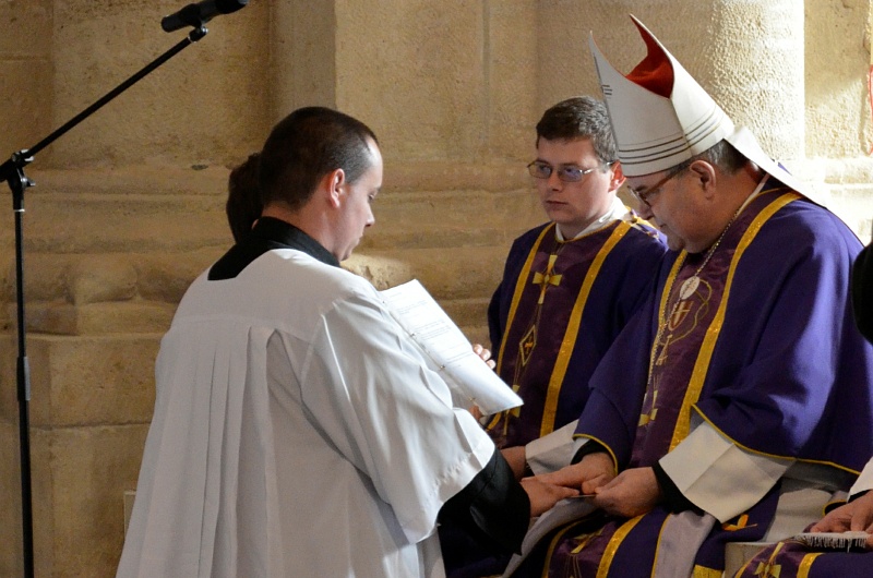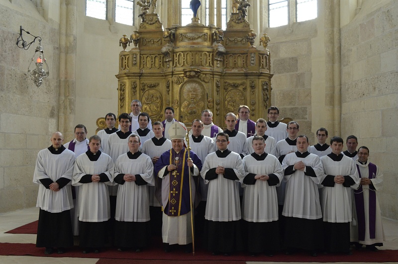 31.03.2012, Alba Iulia (Catholica) - Duminică, 25 martie 2012, în Duminica a V-a a Postului Mare, a avut loc în Catedrala arhiepiscopală „Sfântul Arhanghel Mihail” din Alba Iulia o Sfântă Liturghie pontificală celebrată de Excelenţa Sa IPS dr. Gyorgy Jakubinyi, Arhiepiscop de Alba Iulia. În cadrul acestei celebrări Euharistice solemne a avut loc conferirea treptei acolitatului unui număr de zece studenţi teologi (anul IV de studii) şi celei a lectoratului unui număr de opt studenţi teologi (anul III de studii).