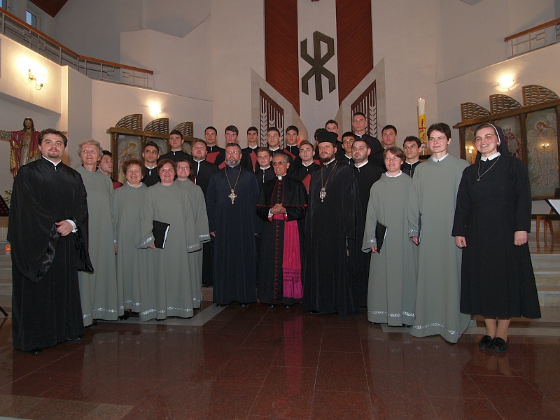 Alături de credincioşi de ambele rituri, au fost prezenţi din partea Bisericii Romano-Catolice Excelenţa Sa Arhiepiscop Francisco-Javier Lozano Sebastian, Nunţiu Apostolic de Romania şi Republica Moldova, iar din partea Bisericii Ortodoxe, pr. Mihai Aurel, director al Seminarului Teologic, şi pr. Arhimandrit Nectarie Şofelea, Stareţul Mănăstirii Radu Vodă. Ne-am bucurat de momente de adâncă spiritualitate şi contemplaţie a Marelui Mister Pascal reprezentat atât de pătrunzător prin frumuseţea celor două mari stiluri ale muzicii bisericeşti: gregoriană şi bizantină, dar şi de momente de fraternitate şi comuniune la recepţia ce a urmat concertului.