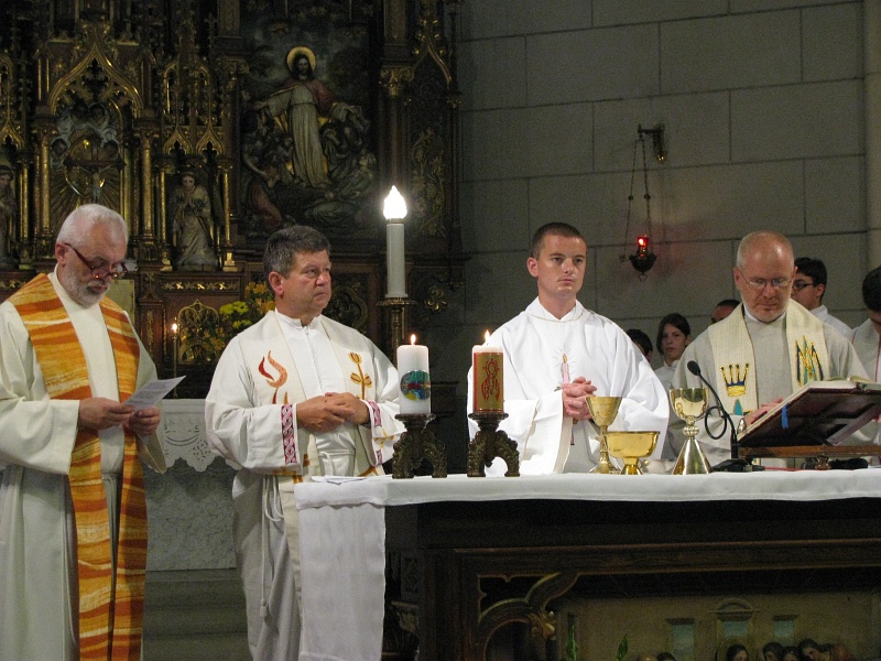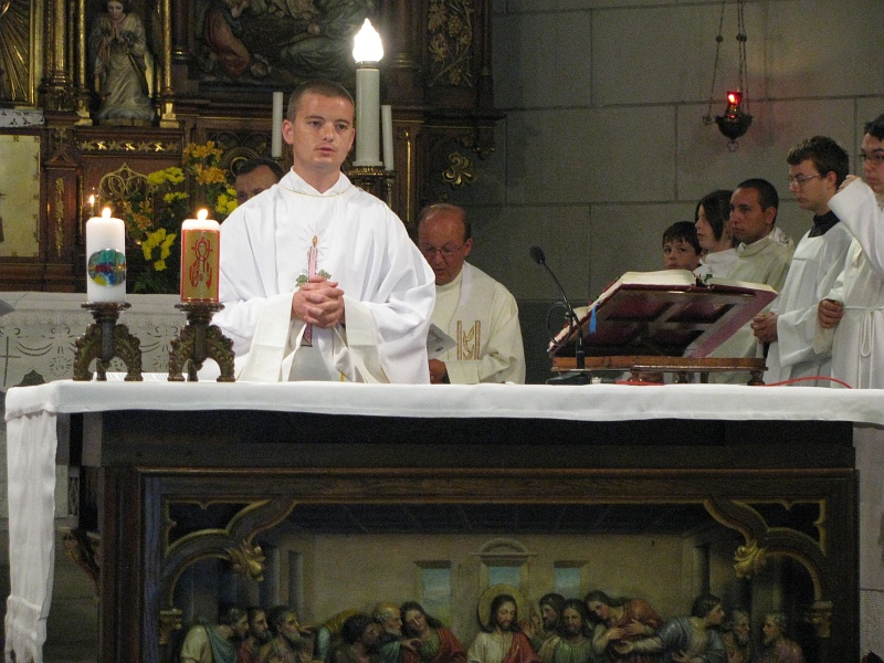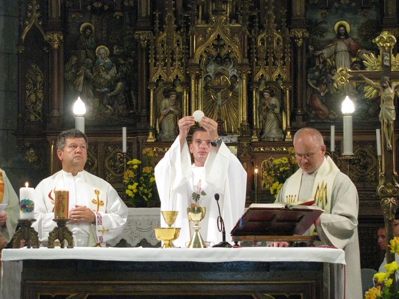 03.07.2012, Timişoara (Catholica) - Duminică, 24 iunie a.c., în sărbătoarea Naşterii Sfântului Ioan Botezătorul, a avut loc în biserica parohială „Preasfânta Inimă a lui Isus” din Timişoara III Elisabetin, cu începere de la orele 10.00, primiţia unui tânăr preot, membru al Ordinului Salvatorian, p. Istvan Barazsuly SDS. După absolvirea studiilor liceale în cadrul Liceului Catolic „Gerhardinum” din Timişoara, a celor teologice, în cadrul Universităţii „Sapientia” din Budapesta şi a noviciatului la Szodliget, Ungaria, votul perpetuu la Timişoara III-Elisabetin, sfinţirea întru diacon la Vac, Ungaria, tânărul Istvan a fost sfinţit întru preot, alături de alţi cinci candidaţi, la 15 iunie 2012 în Domul Sf. Ştefan din Viena prin impunerea mâinilor Eminenţei Sale Christoph von Schonborn.