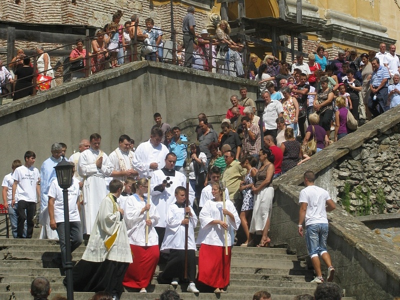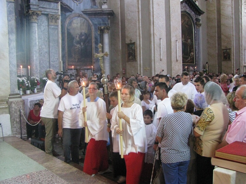 17.08.2012, Maria Radna (Catholica) - „Să ne bucurăm cu toţii în Domnul, celebrând această zi de sărbătoare în cinstea Fecioarei Maria; de ridicarea ei la cer se bucură îngerii şi într-un glas îl laudă pe Fiul lui Dumnezeu.” Urmând îndemnul acestui antifon de introitus, al Sfintei Liturghii din Solemnitatea ridicării cu trupul şi sufletul la cer a Sfintei Fecioare Maria, mii de credincioşi s-au îndreptat în zilele de 14 şi 15 august spre Maria-Radna, pentru a participa la pelerinajul organizat pentru solemnitatea amintită.