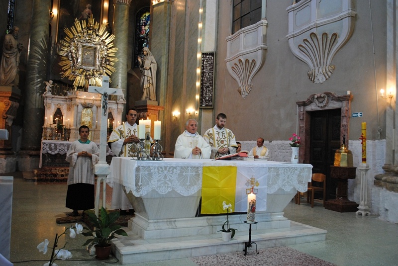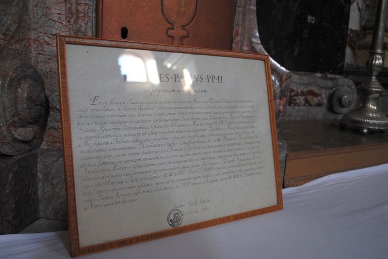 31.08.2012, Maria Radna (Catholica) - În seara zilei de 28 august a.c., începând cu orele 18.00, Maria-Radna a îmbrăcat din nou haine de sărbătoare. Această zi a fost una cu totul deosebită pentru locul de pelerinaj marian, deoarece a fost ziua când s-au împlinit 20 de ani de la acordarea titlului de „Basilica minor” de către Fericitul Papă Ioan Paul al II-lea. Documentul oficial pentru acordarea titlului a fost emis de cancelaria pontificală la 28 august 1992, iar Liturghia solemnă în cadrul căreia s-a făcut publică această hotărâre a avut loc la 15 august 1993, ea fiind celebrată de către Nunţiului Apostolic în România, de atunci, Excelenţa Sa, Arhiepiscopul John Bukovski SVD.