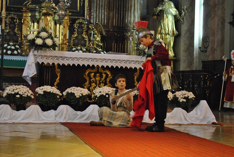 Dacă serbarea celor mai mici, de la grădiniţă, începută la orele 16.00, s-a rezumat la un scurt moment de cântece, la o scurtă povestire a vieţii Sf. Martin, o rugăciune şi binecuvântarea finală, programul celor mai mari a fost mai complex şi mai bogat în momente. Deschis la orele 17.00 cu salutul părintelui vicar şi al catehetei, programul a continuat cu o rugăciune, câteva cântece, iar apoi cu o frumoasă scenetă susţinută în limba germană de elevi, adevărată piesă de teatru care a prezentat celor prezenţi viaţa Sf. Martin, de la copilăria sa, cariera militară, convertirea şi consacrarea sa întru Episcop. Micii actori au ştiut să prezinte cu talent şi curaj aceste momente deosebite din viaţa Sf. Martin, şi mai ales momentele împărţirii mantiei cu un cerşetor şi cel al botezului sfântului, dovedind că au reuşit să îl cunoască în timp ce şi-au învăţat rolurile şi că l-au îndrăgit.