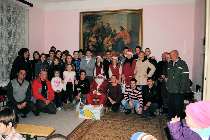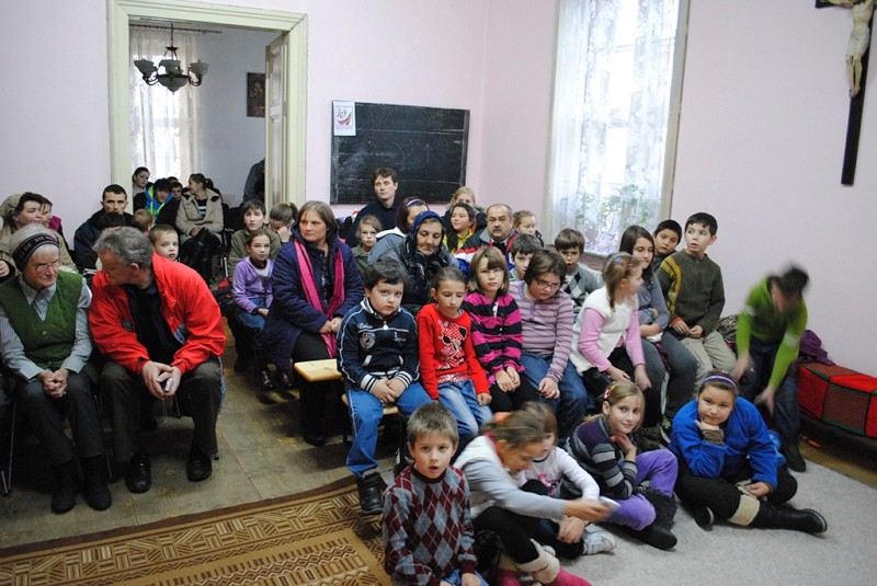 09.12.2012, Lipova (Catholica) - Ca în fiecare an, în seara zilei de 5 decembrie, ajunul zilei Sfântului Nicolae, copii comunităţii din Lipova, şi nu numai, au venit la parohie pentru a aştepta cu nerăbdare venirea lui „Moş” Nicolae, care le dăruieşte câteva clipe frumoase şi desigur câte-un dar fiecărui copil. Încăperea pregătită pentru desfăşurarea activităţilor dedicate Sf. Nicolae a devenit neîncăpătoare pentru zecile de copii, însoţiţi de părinţi sau bunici.