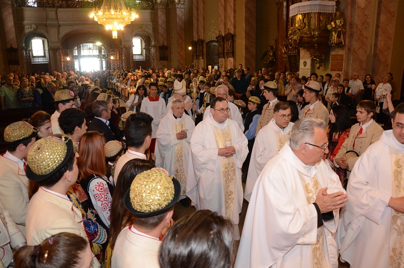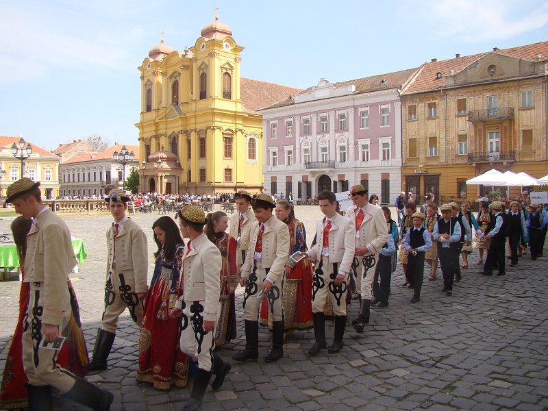 Ziua a început prin sosirea pelerinilor din toate comunităţile bulgare: Dudeştii Vechi, Vinga, Breştea, Sânnicolau Mare, Deta, Denta, Arad şi Timişoara. Foarte mulţi tineri au îmbrăcat hainele populare, de sărbătoare, specifice celor două grupuri mari ento-lingvistice: Vinga şi Dudeştii Vechi. Înaintea Sf. Liturghii, Mons. Gjuka (Gheorghe) Augustinov, canonic catedral şi paroh de Timişoara V Mehala, care asigură asistenţa spirituală a comunităţii bulgare din Timişoara şi pr. Iván Vasilčin, paroh de Dudeştii Vechi, au ieşit în faţa Domului pentru a binecuvânta copii şi tinerii sosiţi festiv în straie populare. Mai apoi, împreună, cei doi preoţi i-au condus pe copii şi pe tineri în Dom. La orele 10.30 a început în Catedrală un program de cântece, condus de corul de bărbaţi din comunitatea din Dudeştii Vechi, sub acompaniamentul orgii alăturându-se coriştilor, în cântec, toţi cei prezenţi.