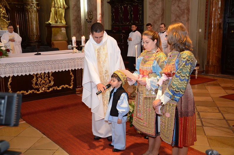Sfânta Liturghie pontificală, celebrată în limbile bulgară, latină şi română de către Excelenţa Sa Martin Roos, Episcop diecezan, în concelebrare cu toţi preoţii bulgari activi în Dieceză, a început la orele 11.00. Episcopul a fost salutat la începutul Sf. Liturghii de către Mons. Gjuka Augustinov în limba română, după care un grup de copii şi tineri, de la cei mai mici la cei mai mari l-au salutat pe întâi-stătătorul Diecezei în limbile română şi bulgară, dăruindu-i un frumos buchet de flori. Episcopul a răspuns salutului, în limba română, prin explicarea însemnătăţii momentului, atât pentru comunitatea bulgară, cât şi pentru întreaga Dieceză: sărbătorirea a 275 de ani de la sosirea bulgarilor-pavlicheni catolici în Banat începe chiar la o zi după aniversarea a 253 de ani de la trecerea la Casa Tatălui Ceresc a Episcopului de Cenad, (anterior de Nicopole ad Istrum), Nikola Stanislavich, artizanul colonizării conaţionalilor săi pe meleagurile noastre. Mai mult decât atât, la 27 aprilie 1750 Capitlul Catedral celebra Requiem-ul solemn în sufragiul sufletului răposatului episcop, pentru ca la 28 aprilie să îl aşeze spre odihna veşnică în cripta Domului, acolo unde şi azi urmaşii săi în credinţă şi apartenenţă naţională merg adesea pentru a-i vizita mormântul şi a se ruga pentru sufletul său.
