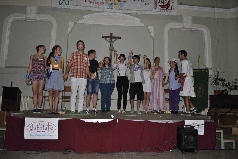 După Sf. Liturghie, tinerii participanţi la întâlnire s-au deplasat spre curtea Liceului Teologic Romano-Catolic „Gerhardinum” unde au servit împreună cina. De la orele 20.00 aula magna (sala festivă) a vechiului liceu „Gerhardinum” a găzduit programul cultural al întâlnirii. Au fost prezentate scenete pe teme biblice (tinerii din parohia Reşiţa I. „Maria Zăpezii”) sau de divertisment (tinerii din grupul parohial Lugoj, iar apoi, în încheiere cei din grupul de studenţi „Jubilate”), dar şi dansuri moderne (tinerii din parohia Lipova) sau dansuri populare germane (tinerii din parohia Oraviţa). Programul a continuat în sala de sport a liceului, unde pr. Ando Attila, paroh de Lipova, a asigurat muzica şi… discoteca asemenea tuturor anilor anteriori. Programul zilei de sâmbătă s-a încheiat la orele 23.oo cu deplasarea la locurile de cazare.