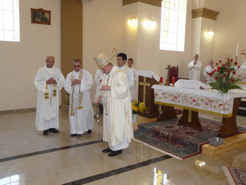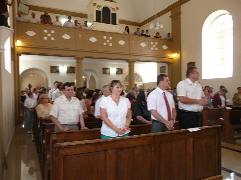 În cadrul predicii sale, PS László a făcut o paralelă între construirea unei biserici din zid şi construirea unei comunităţi locale, formate din credincioşi, ce dovedesc în inimile şi în viaţa lor de zi cu zi trăirea unei credinţe autentice, capul acestei comunităţi, oriunde s-ar afla ea şi indiferent de mărimea ei, nefiind altul decât Isus Cristos, capul Bisericii. Excelenţa Sa a evidenţiat în încheiere şi lucrările de renovare, pe care le-a apreciat ca fiind pozitive şi îmbucurătoare, mai ales că ele înfrumuseţează casa lui Dumnezeu între oameni şi că s-au bucurat şi de reunirea, în jurul acestui ţel, a comunităţii locale şi a multor persoane de bunăvoinţă. S-a amintit aici, în mod special, implicarea unui membru al comunităţii, Nemecek Carol, care a contribuit prin munca sa directă, în mod nemijlocit, la bunul mers al întregului proiect.