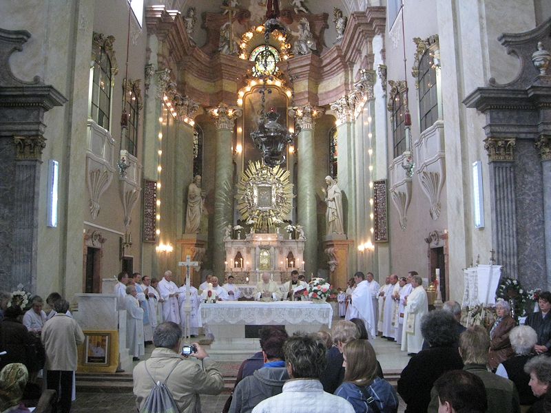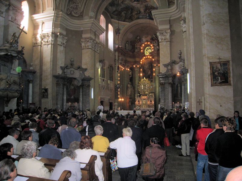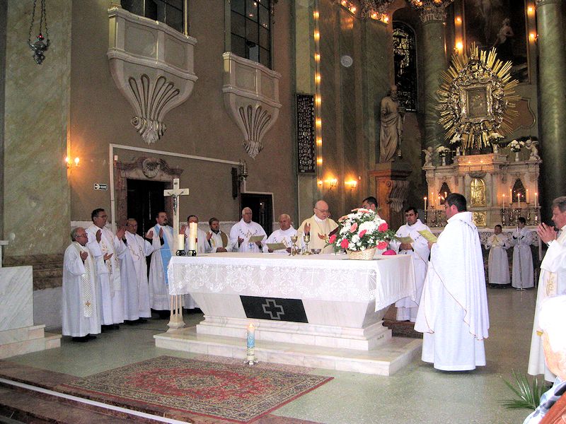 15.10.2013, Maria Radna (Catholica) - Deja pentru al doilea an consecutiv, marţi, în data de 8 octombrie 2013, în ziua dedicată Sfintei Fecioare Maria, ocrotitoarea maghiarilor, cea căreia Sf. Rege Ştefan i-a consacrat regatul său în ultimele zile ale vieţii sale (anul 1038), a avut loc pelerinajul credincioşilor de limbă maghiară la bazilica Maria-Radna. Sf. Liturghie a fost concelebrată începând cu orele 11.00 de către Excelenţa Sa Martin Roos, Episcop de Timişoara, împreună cu preoţii prezenţi, păstorul Diecezei salutându-i cu bucurie, încă de la începutul Liturghiei pe credincioşii sosiţi din numeroase parohii bănăţene şi arădene, dar şi din Ungaria, mai precis parohii care cândva făceau parte din vechea Dieceză de Cenad.