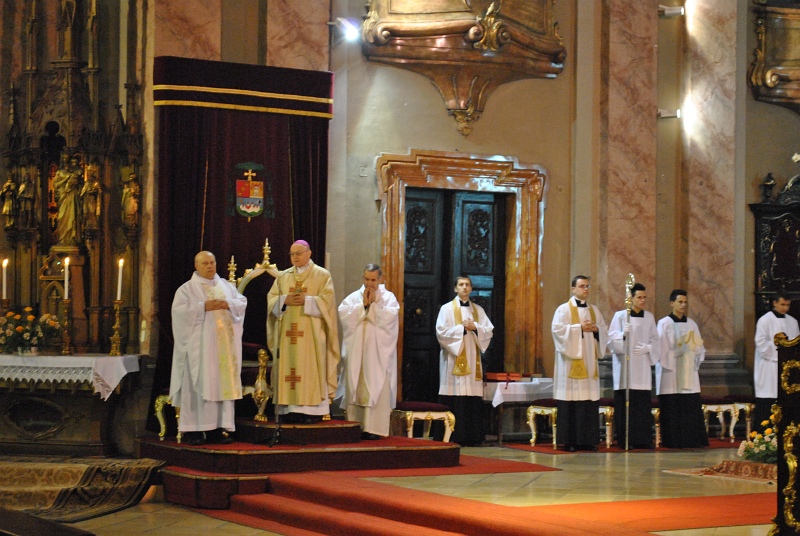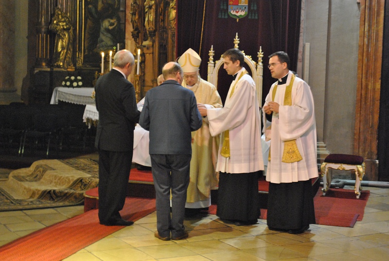 Cu această ocazie aniversară, prof. univ. dr. Walter Kindl şi conf. univ. dr. Ioan Fernbach, concertmaestrul Domului, le-a fost conferită distincţia diecezană „De re dioecesana bene merentibus” şi câte o diplomă de onoare pentru meritele deosebite în conservarea şi promovarea muzicii sacre pe durata atâtor decenii. Celebrarea liturgică a fost înfrumuseţată de muzicieni, membri ai „Chorus & Capella Cathedralis”, fiind interpretate „Misa Încoronării” (Krönungsmesse) de Wolfgang Amadeus Mozart, dar şi piese precum „Laudate Dominum”, „Alleluja” şi „Ave verum corpus”, de acelaşi compozitor. Una din piesele deosebite, interpretate şi cu această ocazie, a fost şi „Gloria et honore”, de Carl Maria von Weber. (text&foto: Claudiu Călin)