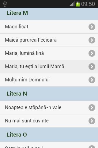 Aplicaţia de cântece include acum aproximativ 90 de cântece, folosite în Biserica Catolică de ambele rituri. În această aplicaţie cântecele pot fi găsite rapid, scriind câteva litere din titlu. În timp aplicaţia va fi completată şi cu alte cântece, precum şi cu indexuri tematice (cântece mariane, de Paşti, la Împărtăşanie ş.a.). Aplicaţiile se găsesc în Google Play (căutaţi „rugaciuni catholica.ro” sau „cantece catholica.ro”), iar pentru cei care nu au telefoane sau tablete cu Android le indicăm exact acelaşi conţinut, dar doar online, pe Mobile.Catholica.ro.