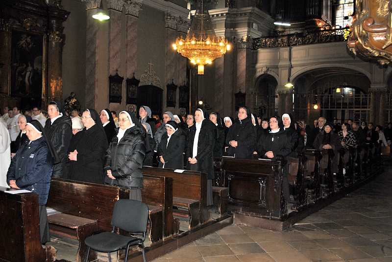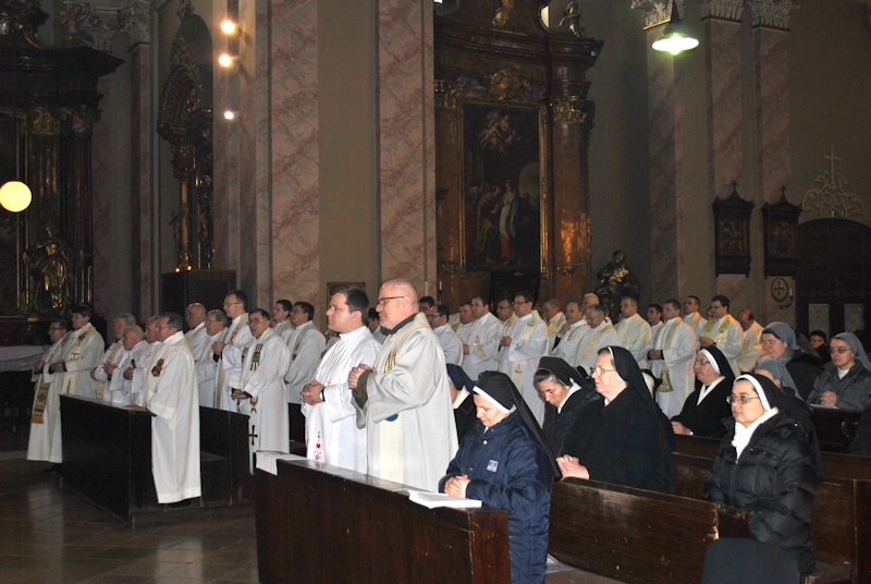 07.02.2014, Timişoara (Catholica) - În data de sâmbătă, 1 februarie a.c., Dieceza de Timişoara a marcat în mod solemn, începând cu orele 11.00, în cadrul unei Sfinte Liturghii pontificale, celebrată de Excelenţa Sa Martin Roos, Episcop diecezan, ziua persoanelor consacrate, zi legată, la nivel diecezan, de mai vechiul pelerinaj al clerului din această parte a ţării la Domul din Timişoara. Într-un număr mare, preoţii şi persoanele consacrate, călugări şi călugăriţe din cuprinsul Diecezei de Timişoara s-au reunit în Catedrală, în jurul altarului, alături de Episcopul diecezan, pentru a marca prin Jertfa Euharistică, rugăciune, cânt şi în deplină comuniune ziua dedicată lor de întreaga Biserică Universală.
