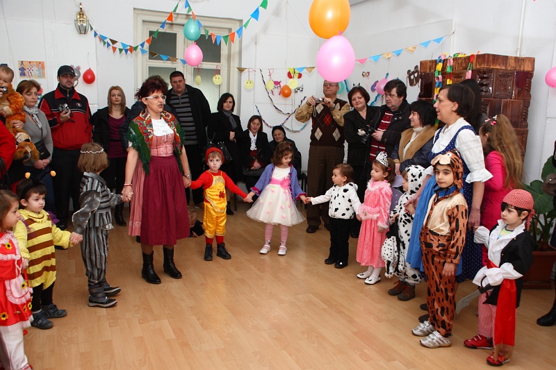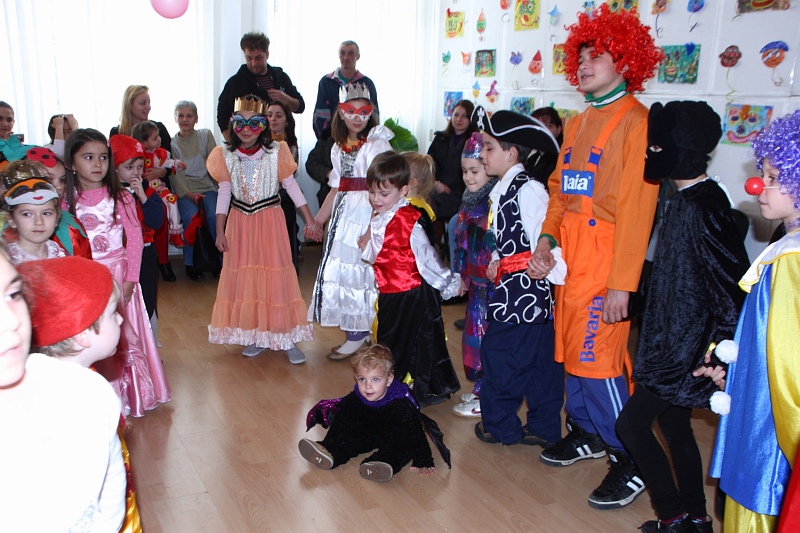 Îndrumaţi de Elfriede Gheorghiţă, director al centrului, şi de educatoarele Elena Pirţea, Edda Lupşiasca, Anita Havranko şi Marinela Clavac, copiii au mărşăluit în faţa invitaţilor: piraţi, prinţese, pompieri, un liliac, un leu, dar şi multe alte măşti frumoase. Au dansat, au cântat cântece amuzante, s-au jucat. Sala a fost ornată cu lucrările copiilor: măşti, desene, origami. Picturile, frumos colorate, au fost realizate în cadrul cercului de pictură de la grădiniţă. Decorul a fost completat de baloane, cu care copiii s-au jucat în final. Toţi copiii au fost premiaţi pentru prestaţia lor, dar şi pentru frumuseţea măştilor: au primit diplome din partea Forumului Democratic al Germanilor din judeţul Caraş-Severin, Reşiţa.
