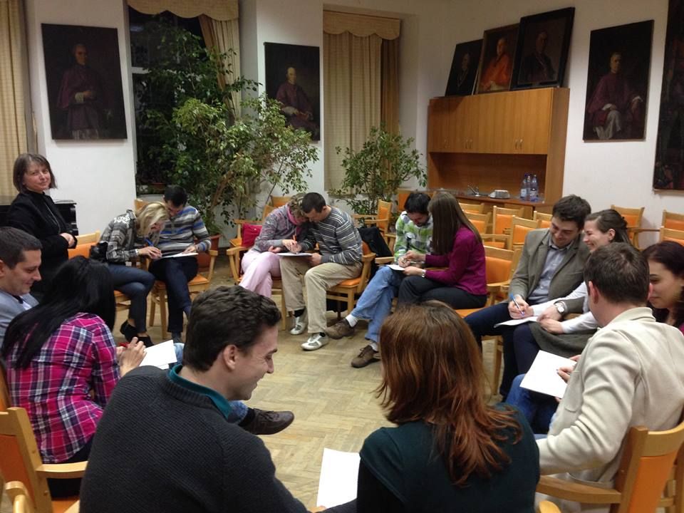 03.04.2014, Cluj (Catholica) - Prin acest Seminar pentru Logodnici, timp de şase săptămâni, ne-am propus să ajutăm cuplurile – care în prima parte a anului se vor căsători în biserica piaristă şi nu numai – din punct de vedere eclezial şi profesional în pregătirea celebrării Sacramentului Căsătoriei pentru o viaţă familială creştină. Temele abordate de noi corespund celor două drumuri pe care le parcurgem atunci când ne pregătim la căsătorie: parcurgem un drum al credinţei pentru a cunoaşte taina lui Cristos şi un drum al cunoaşterii de sine pentru a putea trăi autentic într-o relaţie de cuplu.