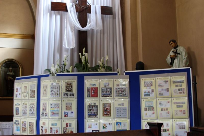 Înainte de binecuvântarea finală, Erwin Josef Ţigla a vorbit credincioşilor prezenţi despre această zi istorică în care Papa Francisc, în prezenţa Papei emerit Benedict al XVI-lea, i-a ridicat la cinstea altarelor pe doi dintre cei mai importanţi Suverani Pontifi ai veacului al XX-lea: Ioan al XXIII-lea şi Ioan Paul al II-lea. După expunerea acestei teme, Ţigla a prezentat expoziţia filatelică deschisă cu această ocazie, expoziţie intitulată: „Papa Ioan Paul al II-lea şi Papa Ioan al XXIII-lea”, cuprinzând exponate din colecţia personală. În continuare au fost prezentate şi emisiile filatelice ale Asociaţiei de Cultură a Adulţilor din Reşiţa „Deutsche Vortragsreihe Reschitza”. Principalul element al expoziţiei dedicate acestui eveniment a fost plicul filatelic special şi ştampila filatelică care poartă data şi marchează evenimentul canonizării celor doi mari Pontifi. Întreaga corespondenţă care a fost trimisă în această duminică din Reşiţa, de la oficiile poştale, a fost marcată cu această ştampilă. Ştampila a fost aprobată de Asociaţia Filatelică din România şi de Poşta Română, la Asociaţiei reşiţene „Deutschen Vortragsreihe Reschitza”.