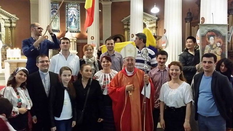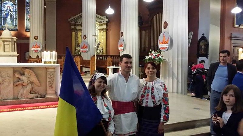 Românii catolici din Irlanda au fost reprezentaţi de un grup de credincioşi romano-catolici din comunitatea păstorită de pr. Eugen Ţâmpu şi de un grup de credincioşi greco-catolici din comunitatea păstorită de pr. Coriolan Mureşan. Grupul de catolici de ambele rituri au venit cu tricolorul românesc şi unii au fost îmbrăcaţi în costume populare din zonele României de unde sunt originari.