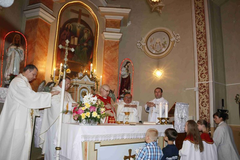 15.06.2014, Timişoara (Catholica) - Sâmbătă, 14 iunie 2014, mica comunitate romano-catolică din Sadova Veche, filiala parohiei Slatina Timiş a sărbătorit, în ajunul Duminicii Preasfintei Treimi hramul bisericii locale. Sărbătoarea a fost cu atât mai festiv marcată, cu cât anul acesta se sărbătoresc 160 de ani de la sfinţirea bisericii din Sadova Veche. Astfel, sâmbătă seara, începând cu orele 18.00 a fost celebrată Sfânta Liturghie solemnă, la care au luat parte Mons. Johann Dirschl, Vicar general al Diecezei de Timişoara şi prepozit capitular (originar din Slatina Timiş), pr. Petru Muţiu, paroh de Făget (originar din Slatina Timiş), pr. Petru Dobra, paroh de Clocotici (fost paroh la Slatina Timiş), pr. Martin Neagu, paroh de Caransebeş (originar din Slatina Timiş) şi pr. Virgil Fechetă, actualul paroh de Slatina Timiş, cel care administrează şi comunitatea filială din Sadova Veche.