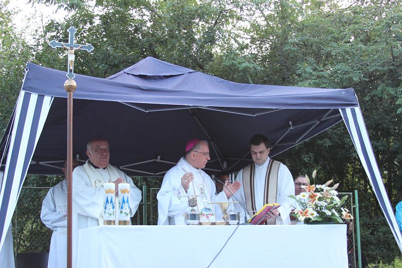 Împreună cu PS Škvorčević au concelebrat aproape toţi preoţii de limba croată din Banatul Montan, dar şi părintele-canonic József Csaba Pál, arhidiacon al Banatului Montan, pr. Nikola Lauš, cancelar şi econom diecezan, pr. Daniel Dumitru, paroh de Oraviţa, pr. Giorgio Paolini de la parohia romano-catolică Borgo Santa Maria din Pesaro, Italia, precum şi alţi preoţi şi călugări din Dieceză. Pelerinajul a început în ajunul sărbătorii, cu devoţiunea Calea sf. Cruci, cu o Sf. Liturghie, în aer liber, la locul amenajat special în acest scop şi cu adoraţie la Sf. Sacrament în biserică. A doua zi, Sf. Liturghie pontificală a fost celebrată tot de Episcopul oaspete începând cu orele 8 dimineaţa.