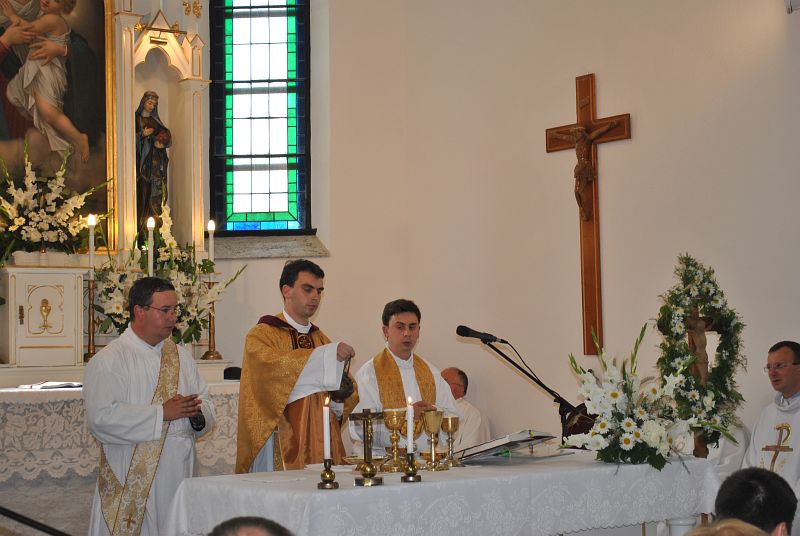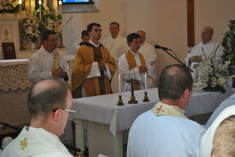 08.07.2014, Timişoara (Catholica) - Duminică, în data de 6 iulie 2014, începând cu orele 16.00, comunitatea romano-catolică din localitatea Zimandul Nou s-a îmbrăcat în haine de mare sărbătoare, reunindu-se în jurul frumoasei biserici parohiale consacrate Sf. Fecioare Maria. După ce cu o zi înainte, sâmbătă dimineaţa, în data de 5 iulie tânărul diacon Bakó László a fost sfinţit întru preot în Domul din Timişoara de către Excelenţa Sa Martin Roos, Episcop diecezan, a doua zi a urmat primiţia (prima Sf. Liturghie) părintelui în biserica din localitatea sa natală.