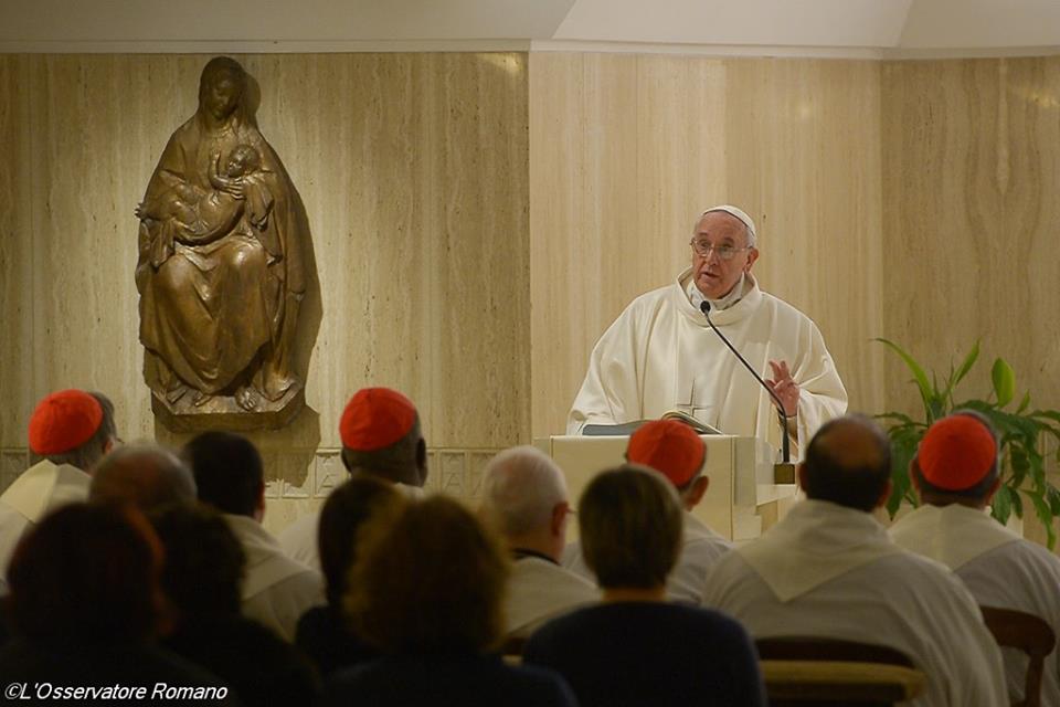 „Toate cele trei Persoane sunt implicate în această creaţie, în această re-creaţie, în această perseverenţă în re-creaţie. Şi la toate trei noi trebuie să răspundem: să păzim şi să facem să crească creaţia, să ne lăsăm împăcaţi cu Dumnezeu în Isus Cristos zi de zi şi să nu-l întristăm pe Duhul Sfânt, să nu-l izgonim de la noi: este oaspetele inimii noastre, cel care ne însoţeşte şi ne face să creştem”. „Domnul”, a încheiat Pontiful, „să ne dăruiască harul de a înţelege că El este la lucru şi de a răspunde cum se cuvine la lucrarea iubirii Sale”.