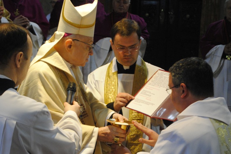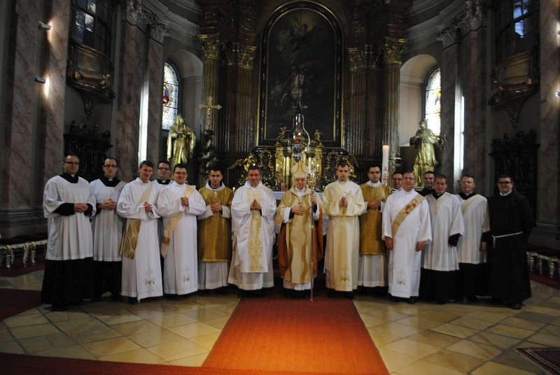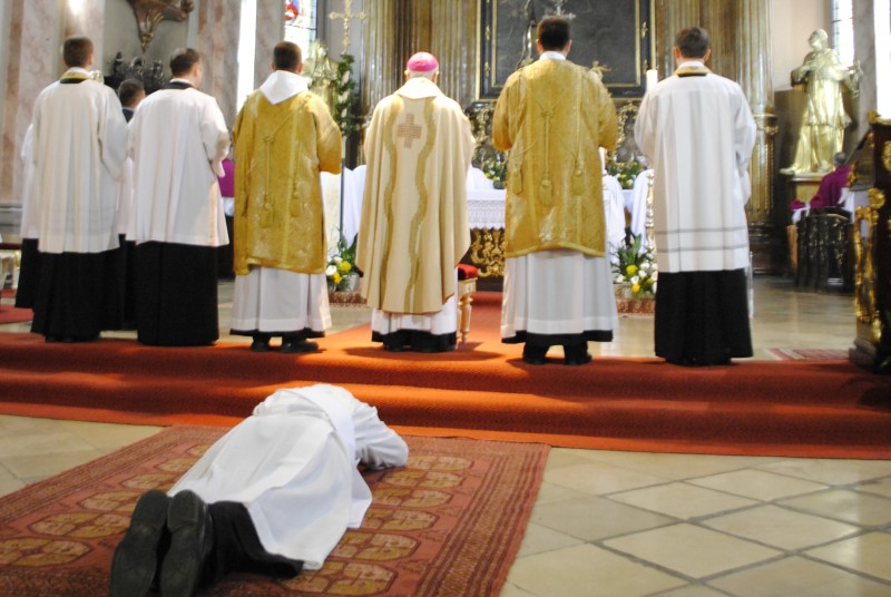 12.04.2015, Timişoara (Catholica) - Sâmbătă, 11 aprilie 2015, începând cu orele 10.00, a avut loc în Domul „Sf. Gheorghe” din Timişoara o Sfântă Liturghie pontificală în cadrul căreia i-a fost conferită sfânta Treaptă a Preoţiei diaconului Ioan Cădărean, originar din parohia Timişoara III Elisabetin, care a urmat studiile teologice în cadrul Seminarului Teologic Romano-Catolic din Alba Iulia. Excelenţa Sa Martin Roos, celebrantul principal al Liturghiei solemne, a fost înconjurat la altar, în concelebrare şi rugăciune, de membrii aulei episcopale, de o parte a profesorilor din Seminarul din Alba Iulia, de un însemnat număr preoţi din clerul diecezan şi regular, de preoţi, diaconi şi studenţi teologi oaspeţi, cu precădere din Arhidieceza de Alba Iulia, din diecezele de Oradea şi Satu-Mare şi din Ordinul Fraţilor Minori (franciscani), respectiv din provincia Sf Ştefan, din Transilvania. Membrii Capitlului Catedral Sf. Gheorghe din Timişoara, canonicii catedrali, au asistat de asemenea, aproape toţi, la această sfinţire. Alături de diaconul Ion Cădărean au fost alături părinţii, fratele cu familia, colegii din cadrul seminarului, nenumăraţi prieteni, întreaga comunitate a călugărilor şi călugăriţelor salvatoriene din Timişoara, dar şi credincioşii parohiei sale.