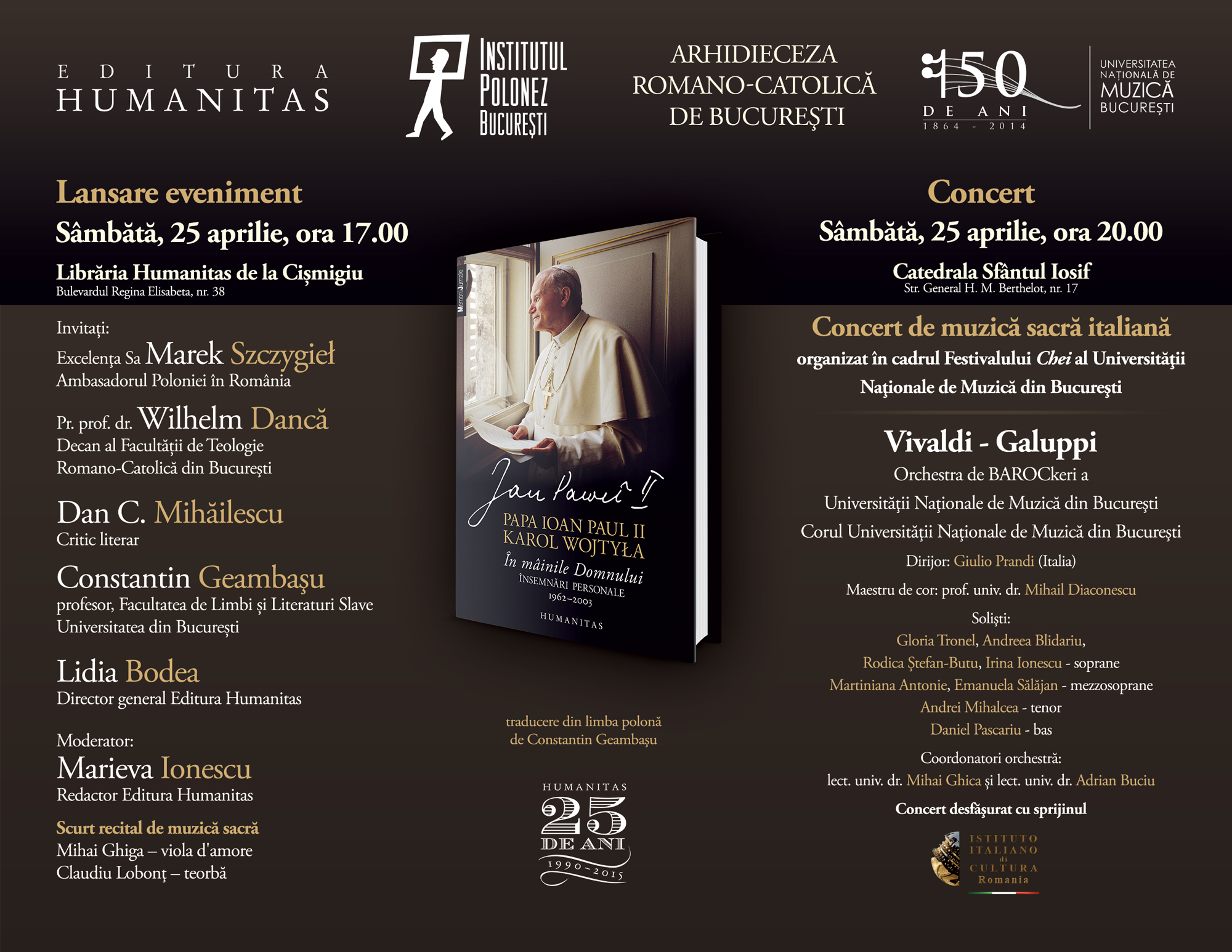Lansare de carte şi concert, la un an de la canonizarea Papei Ioan Paul al II-lea