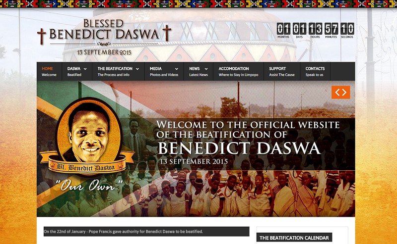 11.08.2015, Roma (Catholica) - A fost lansat un sit special pentru beatificarea primului martir al Africii de Sud recunoscut ca atare de Biserica Catolică. Benedict Samuel Tshimangadzo Daswa, omorât pe 2 februarie 1990, va fi beatificat pe 13 septembrie. Situl este vizitabil la DaswaBeatification.org.za, prezentând viața fericitului și informații despre ceremonia de beatificare.