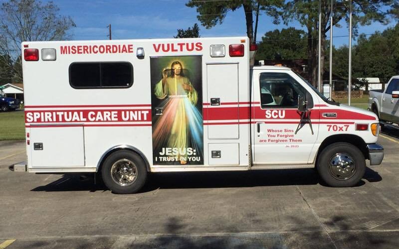 „Sfântul Părinte ne-a cerut să ne concentrăm pe Sacramentul Reconcilierii și acesta este scopul acestei unități de asistență spirituală, pentru a-i duce pe oameni la o comuniune mai profundă cu Cristos”. Pr. Michael Champagne a declarat că preoții adesea ascultă Spovezi în afara bisericii și acesta este doar un mod mai ușor de a-și continua misiunea, „în acest fel putem avea totul pregătit și să fim prezenți acolo unde oamenii sunt la întruniri”. Pr. Champagne a declarat că este vorba categoric de o premieră, nu doar pentru Dieceza de Lafayette ci poate chiar pentru întreaga țară. Înăuntrul ambulanței transformate preoții vor avea un stoc de iconițe, rozarii și chiar și apă sfințită.