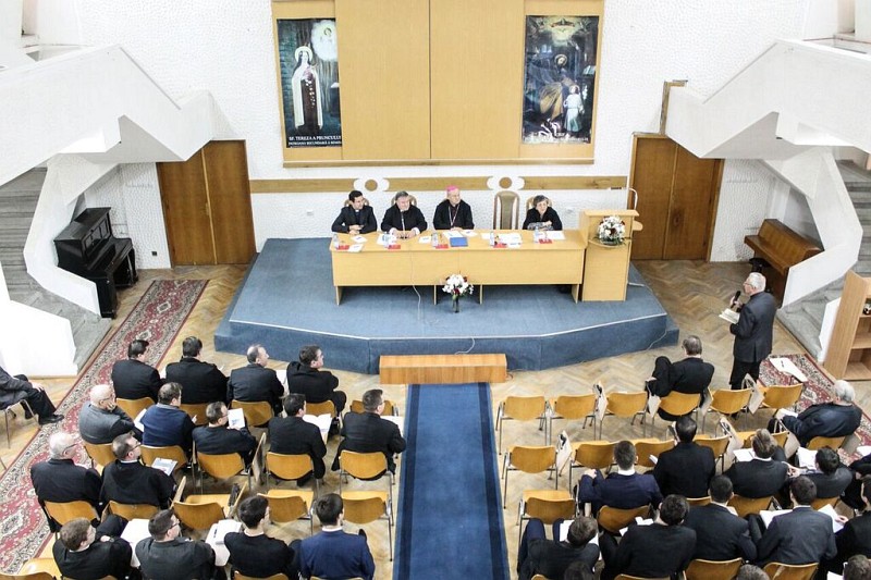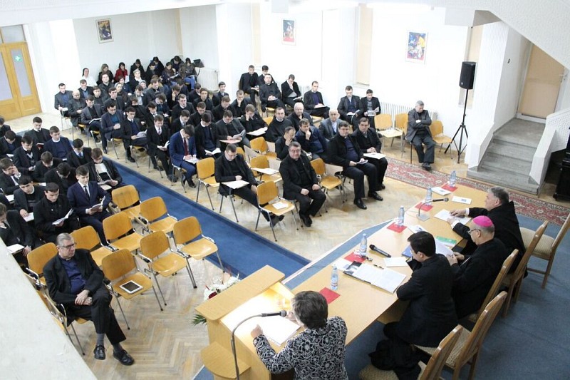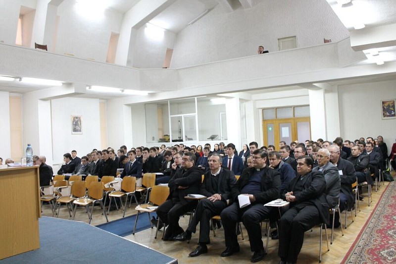 30.11.2015, Iași (Catholica) - Intitulat „Biserica și trăirile lumii contemporane”, simpozionul internațional organizat de pr. dr. Iulian Faraoanu la 26 noiembrie 2015, în Aula Magna a Institutului Teologic Romano-Catolic din Iași, s-a constituit ca o reflecție asupra marelui dar al Conciliului Vatican al II-lea, punând accent în special pe interacțiunea dintre Biserică și lume. La acest simpozion susținut de către Facultatea de Teologie Romano-Catolică, din cadrul Universității „Alexandru Ioan Cuza” din Iași, în colaborare cu Institutul Teologic Romano-Catolic „Sfântul Iosif” din Iași, au luat parte PS Petru Gherghel, părinți profesori din cadrul Facultății de Teologie Romano-Catolică, seminariști, studenți și doi invitați speciali din Italia: pr. prof. dr. Juan Javier Flores Arcas, Rector al Ateneului Pontifical „Sfântul Anselm” din Roma, și prof. dr. Cettina Militello, profesoară la Institutul Liturgic Pontifical „Sfântul Anselm” din Roma.