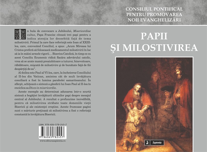 23.02.2016, Iași (Catholica) - La Editura Sapientia din Iași a apărut recent cartea Papii și milostivirea, redactată de Consiliul Pontifical pentru Promovarea Noii Evanghelizări și tradusă în limba română de pr. dr. Mihai Pătrașcu. Cartea apare în colecția „Cateheză”, formatul 14×20 cm, are 98 pagini și poate fi procurată de la Librăria Sapientia (www.librariasapientia.ro), precum și de la celelalte librării catolice din țară la prețul de 10 lei.