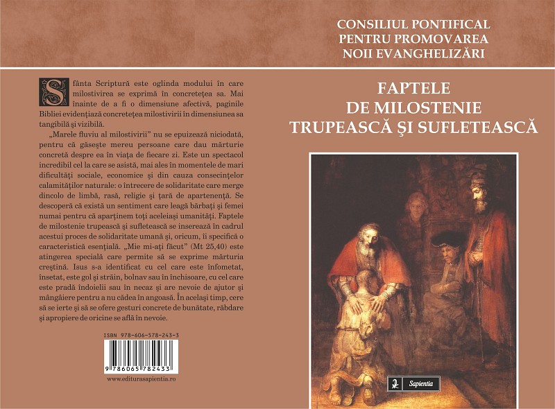 25.02.2016, Iași (Catholica) - La Editura Sapientia din Iași a apărut recent cartea Faptele de milostenie trupească și sufletească, redactată de Consiliul Pontifical pentru Promovarea Noii Evanghelizări și tradusă în limba română de pr. dr. Mihai Pătrașcu. Cartea apare în colecția „Cateheză”, formatul 14×20 cm, are 78 pagini și poate fi procurată de la Librăria Sapientia (www.librariasapientia.ro), precum și de la celelalte librării catolice din țară la prețul de 10 lei.