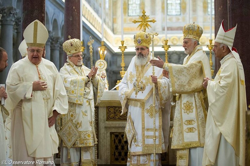 La Sfânta Liturghie au participat un număr mare de Episcopi și preoți de diferite rituri printre care și Eminențele lor Cardinal Leonardo Sandri, prefectul Congregației pentru Bisericile Răsăritene, și Lluís Martínez Sistach, Cardinal emerit de Barcelona. Biserica Română Unită cu Roma, Greco-Catolică, a fost reprezentată de Preasfinția Sa Virgil Bercea, Episcop de Oradea, și Preasfinția Sa Alexandru Mesian, Episcop de Lugoj. Alături de Preasfințiile lor s-au aflat și pr. Gabriel Buboi, rectorul Colegiului Pio Romeno din Roma, pr. Eduard Fărtan, rectorul Misiunii Greco-Catolice din Anglia, alături de un grup de studenți ai Colegiului român din Roma.