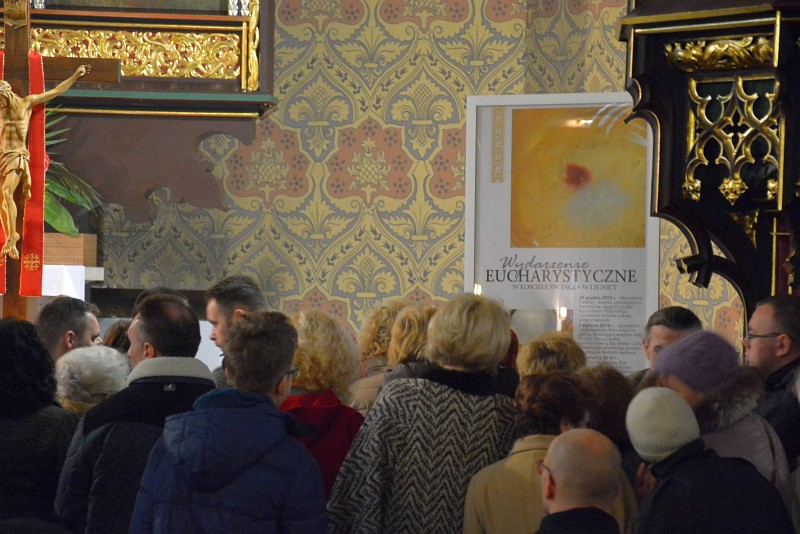 19.04.2016, Legnica (Catholica) - O ostie sângerândă care „are caracteristicile unui miracol euharistic” a fost aprobată pentru venerare în Polonia. Anunțul a fost făcut de Episcopul Zbigniew Kiernikowski de Legnica, în ziua de 17 aprilie 2016. În ziua de Crăciun din 2013, în parohia Sf. Jacek din Legnica, o ostie consacrată a căzut pe jos, a spus Episcopul. A fost ridicată și pusă într-un recipient cu apă. Curând după aceasta au apărut pete roșii pe ostie. Episcopul de atunci de Legnica, Stefan Cichy, a înființat o comisie pentru a verifica ostia.