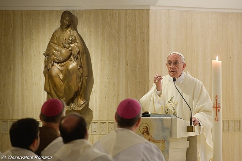 Din invidie diavolul a făcut să intre păcatul în lume, și la fel și în comunitățile creștine: „este aproape normal” să existe egoism, gelozie, invidie, dezbinări. Și acestea îi fac pe unii să îi vorbească de rău pe ceilalți. În Argentina, a remarcat Papa Francisc, aceste persoane sunt numite „zizzanieri”, semănători de zizanie. Dezbină. Dezbinările încep cu limba. „A vorbi de rău pe alții înseamnă a-i murdări pe alții. Cel care vorbește de rău, murdărește, distruge. Distruge bunul nume, distruge viața și, de atâtea ori, fără motiv, împotriva adevărului. Isus s-a rugat pentru noi, pentru noi toți care suntem aici și pentru comunitățile noastre, pentru parohiile noastre, pentru Diecezele noastre: ca toți să fie una. Să cerem de la Domnul harul Său pentru că mare este puterea diavolului, a păcatului care ne împinge să facem dezbinări. Întotdeauna. Să ne dea harul Său, darul Său, și care este darul care face unitatea? Duhul Sfânt. Să ne dea acest dar, care face armonie, pentru că El este armonia însăși, gloria comunităților noastre. Și să ne dăruiască pacea, dar împreună cu unitatea. Să cerem harul unității pentru toți creștinii, marele și micul har de fiecare zi pentru comunitățile noastre, pentru familiile noastre, împreună cu harul de a ține limba în frâu.”
