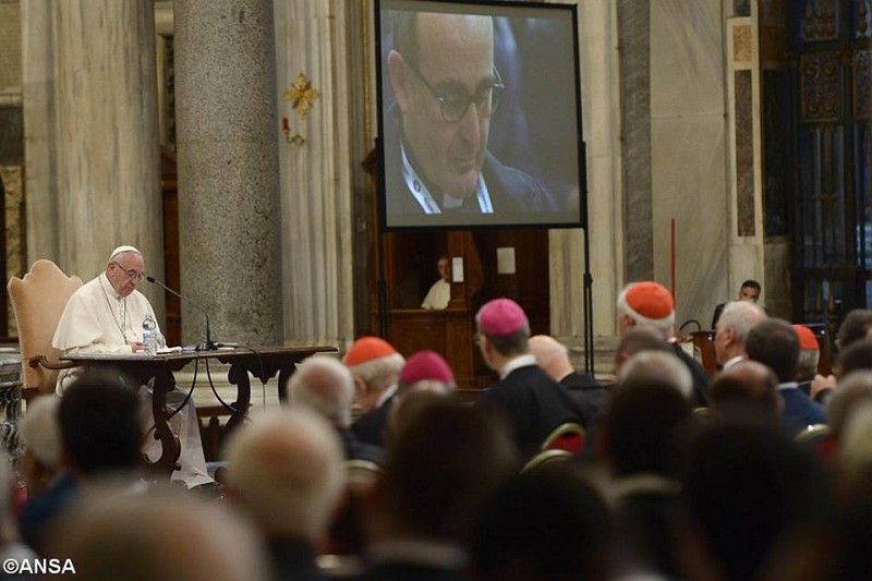Papa Francisc și-a încheiat meditația invitându-i pe preoți să se roage cu el Salva Regina, pentru ca „împreună cu Maria să putem fi semn și Sacrament al milostivirii Tale”.