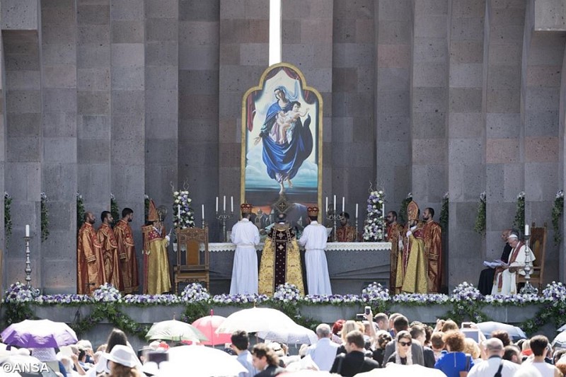 În viziunea Catolicosului și în contextul vizitei papale „(împreună) am reconfirmat că Sfânta Biserică a lui Cristos este una în răspândirea Evangheliei lui Cristos în lume, în îngrijirea creației, în înfruntarea problemelor comune și în misiunea vitală de mântuire a omului, care este coroana și gloria creației lui Dumnezeu. O misiune a Bisericii lui Cristos este întărirea solidarității între națiuni, încurajând fraternitatea și colaborarea, iar o mărturie în acest sens este participarea la această Sfântă Liturghie a minorităților etnice ale Armeniei: asirieni, belaruși, greci, georgieni, evrei, kurzi, germani, polonezi, ruși și ucraineni, care în conviețuire frățească cu poporul nostru își aduc aportul la dezvoltarea țării și la progresul vieții sociale.”
