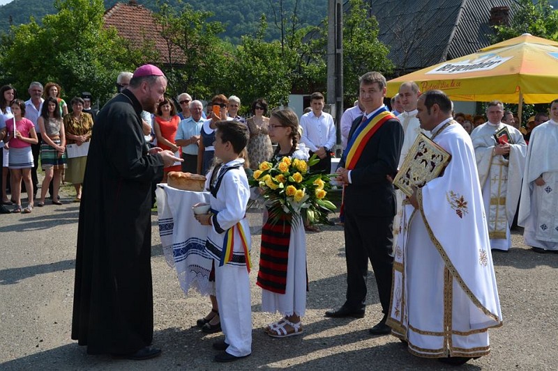 Astfel, ziua de duminică a găsit reuniți în jurul bisericii nou construite, credincioși și preoți veniți din mai multe parohii apropiate, care s-au rugat împreună la sfințirea locașului de cult. „Evenimentul pe care îl trăim este unul de maximă importanță pentru că el va fi trecut atât în analele pământului, cât și în analele cerului, motiv pentru care îmi permit astăzi să rostesc, la întâmpinarea Preasfinției voastre, cuvintele Mântuitorului Cristos: Mulți ar fi dorit să vadă ceea ce vedem noi astăzi”, a spus pr. Sălăgean Ioan, protopop de Seini, în mesajul de întâmpinare a Ierarhului Eparhiei. Ritualul de sfințire a început la ora 10:30 și a fost urmat de Sfânta Liturghie arhierească, celebrată de Preasfințitul Vasile Bizău. Au concelebrat pr. Sălăgean Ioan (protopop), pr Anton Dobrican (paroh) și un sobor de aproximativ douăzeci de preoți invitați la sărbătoare. Răspunsurile la liturghie au fost date de Corul Seminarului Greco-Catolic din Oradea, dirijat de prof. dr. Radu Mureșan.
