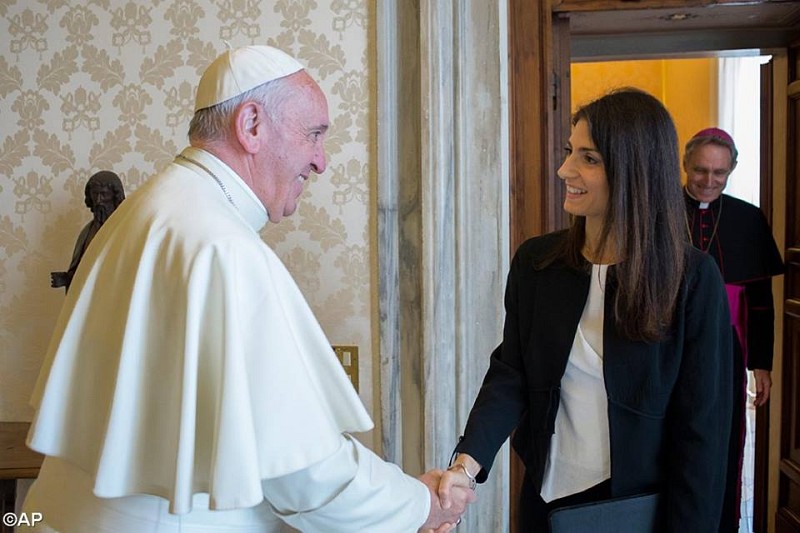 02.07.2016, Vatican (Catholica) - Papa Francisc a avut o întâlnire privată vineri în Vatican cu noul primar ales al Romei, Virginia Raggi. Avocata de 37 de ani este cea mai tânără persoană ce a condus vreodată Consiliul orășenesc al Romei, precum și prima femeie primar a Cetății Eterne. A câștigat alegerile luna trecută, strângând peste 67% din voturi. Promisiunea ei este să găsească soluții la problemele vechi ale orașului, precum traficul congestionat, managementul defectuos, lipsa de locuințe sociale și corupția care a erupt cel mai recent în câteva scandaluri.