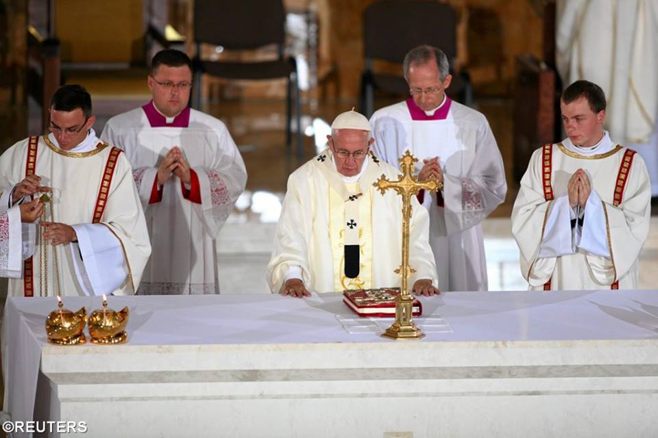 Pontiful a invitat preoții polonezi și persoanele consacrate să își amintească propria lor chemare de a deveni discipolii lui Isus, întorcându-se spre Evanghelie, care este “o carte deschisă” în care trebuie să continuăm să scriem cu propriile noastre fapte de milostivire. “Este istoria chemării noastre, glasul iubirii care a atras și a transformat viața noastră, făcându-ne să lăsăm toate după Cuvânt și să-l urmăm”. La Liturghia de sâmbătă din Sanctuarul Sf. Ioan Paul al II-lea au participat aproximativ 2.000 de Episcopi, preoți, persoane consacrate și seminariști în interiorul Sanctuarului, alți 5.000 participând de afară.