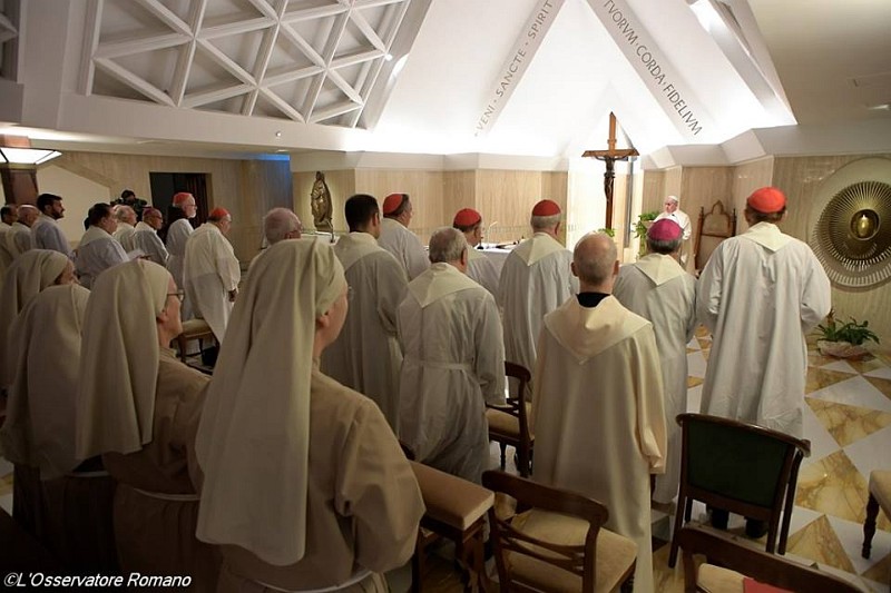 „Același lucru îl poate spune Sfântul Paul nouă, celor de astăzi, Bisericii de astăzi. ‘Fraților în această privință nu pot să vă laud, pentru că vă adunați împreună nu pentru ce-i mai bun, ci pentru ce-i mai rău’. Dar Biserica adunată toată? Pentru ce-i mai rău, pentru dezbinări, pentru ce-i mai rău, pentru a murdări Trupul lui Cristos în celebrarea euharistică. Tot Sfântul Paul spune în altă parte: ‘Cine mănâncă și bea trupul și sângele lui Cristos în mod nevrednic, mănâncă și bea propria osândă’. Să îi cerem Domnului unitatea Bisericii, să nu fie dezbinări. Să fie unitate și la rădăcina Bisericii, jertfa lui Cristos pe care o celebrăm în fiecare zi”.