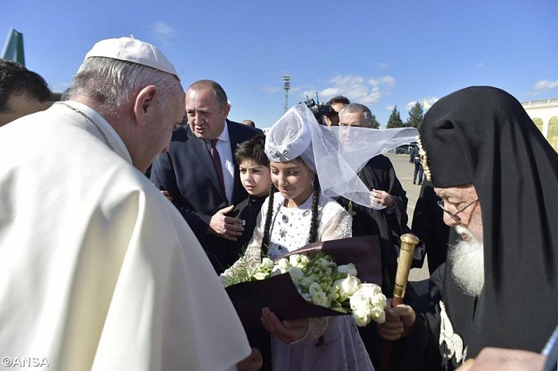 Pe lângă președintele georgian, Papa Francisc a fost întâmpinat la sosire de Preafericirea Sa Ilia al II-lea, Catolicosul și Patriarhul întregii Georgii, liderul spiritual al Bisericii Ortodoxe Georgiene. Deși nu a făcut o referință explicită, cuvintele Papei au făcut aluzie la ocupația rusă a statelor parțial recunoscute, Abhazia și Osedia de Sud, de după războiul ruso-georgian din 2008. Deși Abhazia și Osetia de Sud și-au declarat independența de Georgia la puțin timp după război, doar câteva națiuni, inclusiv Rusia, le-au recunoscut. Majoritatea comunității internaționale, inclusiv Statele Unite ale Americii și Uniunea Europeană, consideră teritoriile ca fiind ocupate și au condamnat prezența militară rusă.
