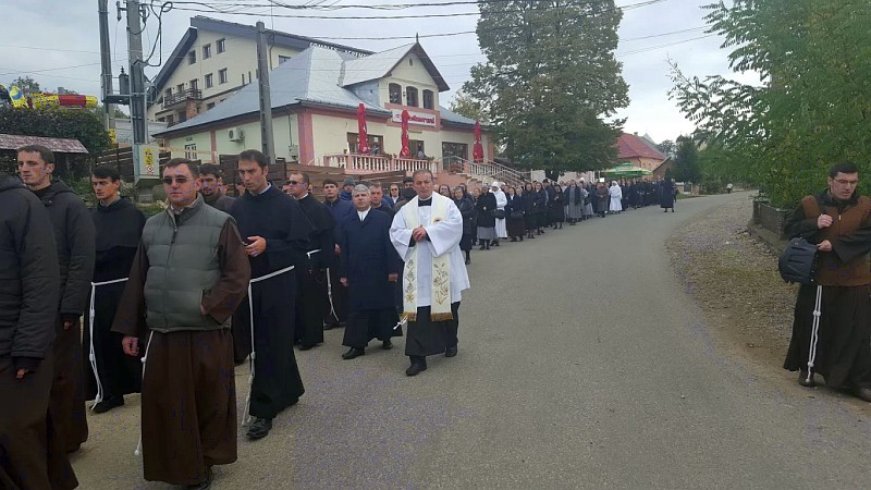 12.10.2016, Cacica (Catholica) - În ziua de duminică, 9 octombrie 2016, în Dieceza de Iași s-a organizat pelerinajul persoanelor consacrate la sanctuarul marian din Cacica. Persoanele consacrate au pornit dis-de-dimineață, din comunitățile lor aflate în diferitele zone mai apropiate sau mai îndepărtate ale Diecezei, pentru a desfășura acest moment deosebit al pelerinajului prin care să îi aducă preamărire lui Dumnezeu pentru darul vieții consacrate prin mijlocirea Mamei cerești. Primul moment al acestui pelerinaj a fost procesiunea spre sanctuar prin recitarea Sfântului Rozariu animat de pr. Augustin Folner, noul responsabil al oficiului pentru Viața Consacrată al Diecezei de Iași, citim în materialul de pe Ercis.ro.