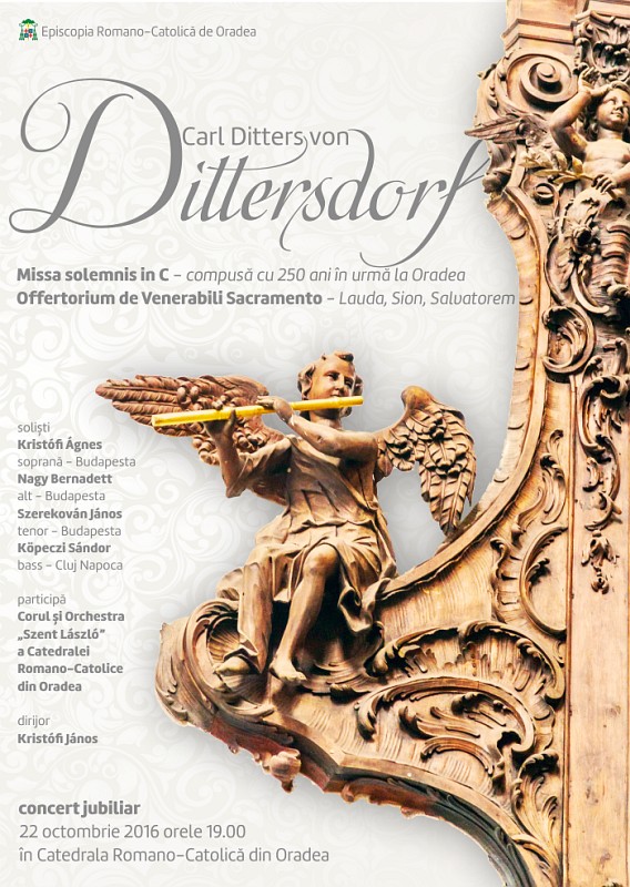Carl Ditters von Dittersdorf s-a născut la Viena în anul 1739, fiind al șaptelea din cei zece copii ai familiei. Tatăl său a fost croitorul teatrului curții imperiale din Viena. În anul 1765 Carl Ditters von Dittersdorf ajunge la Oradea, unde exact cu 250 de ani în urmă, în 1766 finalizează una din cele mai importante lucrări vocal simfonice, Missa solemnis în do major – Missa Credo. Prezentarea acestei lucrări după o perioadă de două secole și jumătate de la compunere, a devenit posibilă astăzi și datorită muzicologului Johannes Kirner din München, specialist în cercetarea lucrărilor lui Dittersdorf. Până în anul 2008 această lucrare era accesibilă doar în forma știmelor muzicale în unele biblioteci, urmând, ca la 22 octombrie 2016, orele 19.00 să fie prezentată în cadrul unui concert vocal-simfonic de excepție în Catedrala romano-catolică de Oradea.