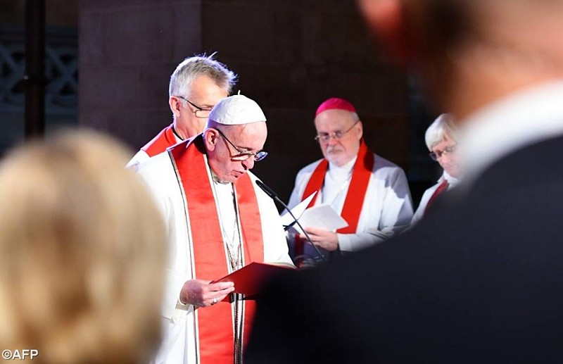Papa Francisc se află în această țară, în perioada 31 octombrie – 1 noiembrie, pentru a participa la evenimentele legate de împlinirea a 500 de ani de la Reformă și pentru a marca de asemenea 50 de ani de dialog ecumenic între Biserica Catolică și Federația Luterană Mondială. Este pentru prima oară când un Papă merge în Scandinavia de la vizita Sf. Papă Ioan Paul al II-lea, din 1989, încoace. Serviciul comun de rugăciune a inclus cântece religioase, lecturi din Scriptură și rugăciuni rostite de Cardinalul Kurt Koch, președintele Consiliului Pontifical pentru Promovarea Unității Creștinilor, și Papa Francisc, alături de Episcopul luteran Munib Younan, președintele Federației Luterane Mondiale, și Rev. Junge.