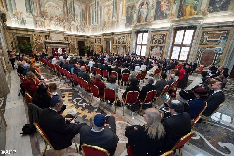 În discursul său, Papa a deplâns numeroasele atacuri împotriva libertății religioase, afirmând că milostivirea nu poate fi proclamată doar în cuvinte, ci trebuie manifestată, în acțiune, și, mai presus de toate, „cu un stil de viață realmente milostiv, format din iubire dezinteresată, slujire fraternă, împărtășire sinceră. Este stilul pe care Biserica dorește mai mult să-l asume […]. Este stilul la care sunt chemate și religiile pentru a fi, îndeosebi în acest timp al nostru, mesagere de pace și artizane de comuniune; pentru a proclama, în mod diferit de cel care alimentează ciocniri, diviziuni și închideri, că astăzi este timp de fraternitate. De aceea este important a căuta întâlnirea dintre noi, o întâlnire care, fără sincretisme conciliante, să ne facă mai deschiși la dialog pentru a ne cunoaște și a ne înțelege mai bine; să elimine orice formă de închidere și de dispreț și să șteargă orice formă de violență și de discriminare.”