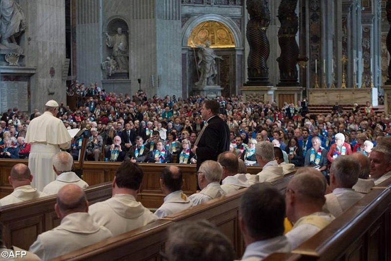 15.11.2016, Vatican (Catholica) - Pe 15 noiembrie, Papa Francisc a salutat un grup mare de pelerini olandezi, în Bazilica San Pietro. Grupul era format din reprezentanți ai Asociației olandeze a Organizațiilor Catolice, sosit la Roma pentru a participa la Jubileul Milostivirii. Grupul a fost însoțit de Arhiepiscopul de Utrecht, Cardinalul Wilem Eijk. Prelatul l-a rugat inițial pe Papă să celebreze Liturghia pentru acest grup. Nu a fost posibil, dar Sfântul Părinte a venit totuși după Liturghie să îi salute. Cardinalul a profitat atunci să îi prezinte Papei o carte nouă intitulată „O Olandă primitoare”, care reunește inițiativele catolice din această țară ca răspuns la convocarea Jubileului Milostivirii. Conferința Episcopală Olandeză distribuie exemplare în toate parohiile, ca mărturie și încurajare spre milostivire.