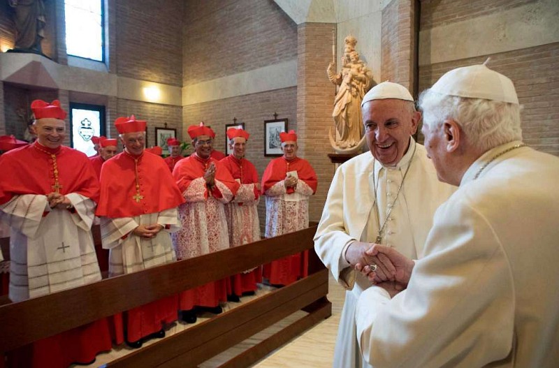 Papa Francisc și noii Cardinali în vizită la Papa emerit Benedict al XVI-lea